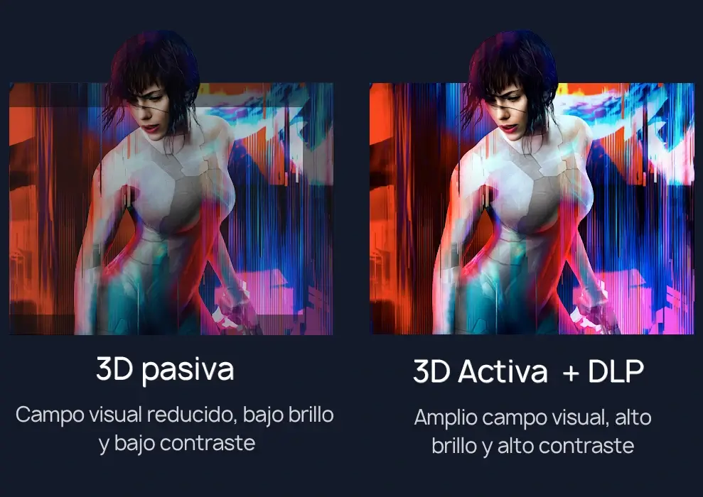 Un proyector con modo 3D es un dispositivo avanzado capaz de proyectar imágenes tridimensionales en una superficie plana, proporcionando una experiencia visual inmersiva que simula la realidad. A diferencia de los proyectores convencionales, los proyectores con modo 3D permiten a los espectadores percibir la profundidad, mejorando significativamente la experiencia de visualización. Actualmente, existe un amplio catálogo de películas y contenido 3D disponible en diversas plataformas de streaming como: Netflix, Amazon Prime Video, Disney+, YouTube, entre otros y reproductores Blu-ray; que permiten a los usuarios disfrutar de una experiencia cinematográfica enriquecedora en la comodidad de su hogar.