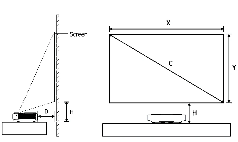 - Para una mejor experiencia de visualización, recomendamos usar un tamaño de proyección de 80-150 pulgadas. Exceder este rango puede afectar la calidad del contenido proyectado. La calidad de la imagen puede variar según los hábitos de uso del producto y las condiciones ambientales.