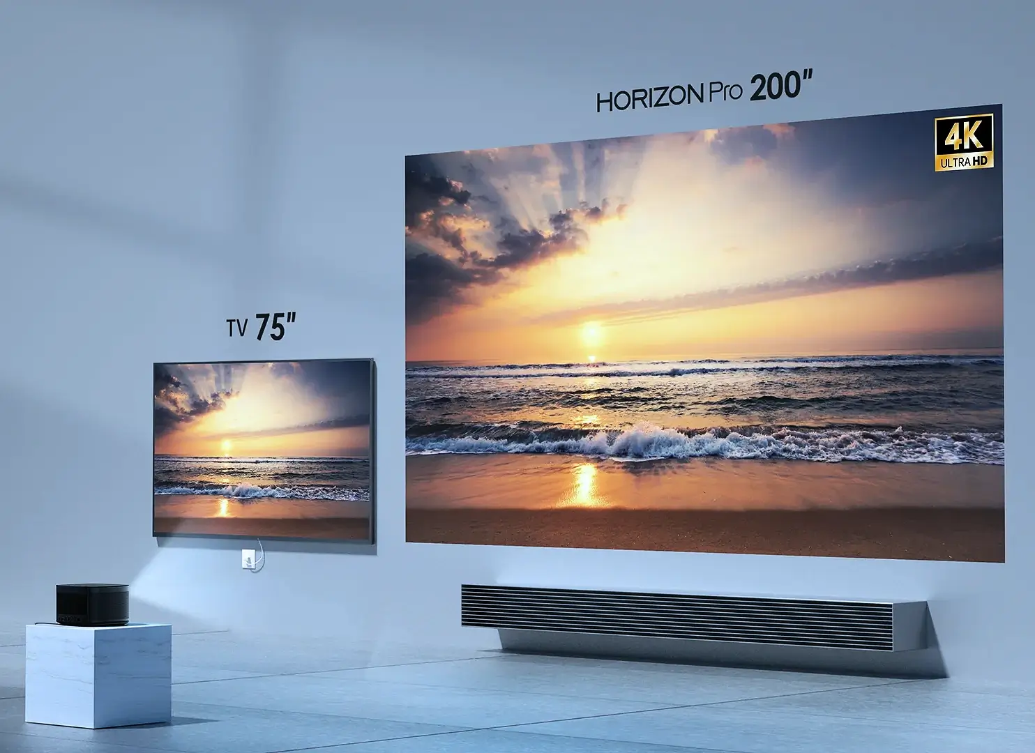 La relación de alcance de 1,2:1 de HORIZON Pro le proporciona más libertad para la instalación y colocación del proyector, asegurando que se adapte a cualquier habitación, grande o pequeña, sin problemas. Con las múltiples opciones de distancia de proyección disponibles, puede proyectar fácilmente sus películas y programas favoritos en el tamaño de pantalla que elija (60″-200″) y crear la mejor experiencia de visualización para su espacio vital.